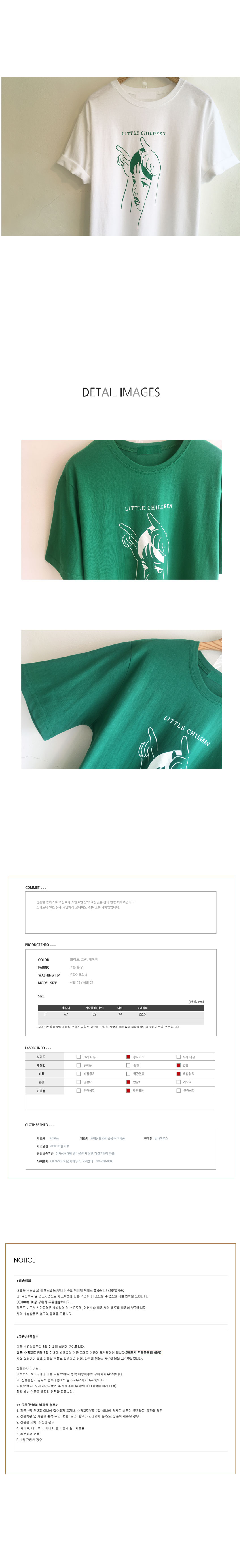 Free(단면): 가슴둘레 52cm, 어깨 44cm, 소매 22.5cm, 총장 67cm