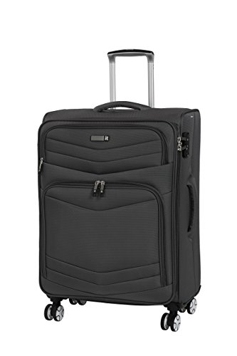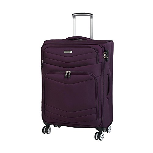 Studio : IT Luggage Parent Code Publisher : IT Luggage Parent Code Binding : Apparel Product Description This unique case from IT Luggage is the perfect choice for your next adventure! this lightweight yet durable case features an 8 wheel rolling system and telescoping top handle for superior manoeuvrability. The wide body design and semi expander provide additional capacity, while two front pockets allow for easy access to on-the-go items such as travel documents or accessories. The fully lined interior contains a zip pocket, 2 slip pockets, and tie down straps to keep your items in place. Packing for your next adventure has never been easier with this functional and modern set! 0