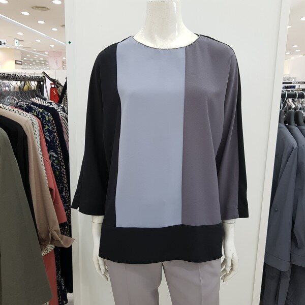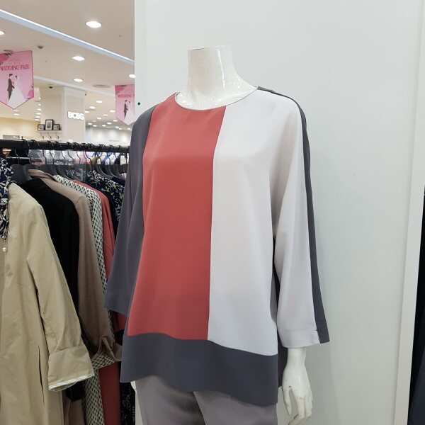간절기에 입기 좋은 폴리 소재에 컬러 배색이 감각적으로 들어가 캐주얼한 데님이나 슬랙스등 다양한 하의와 코디하기 좋은 블라우스 입니다. 툭 떨어지는 여유있는 품으로 체형커버하기 좋고 힙 중간 기장으로 다리가 길어보이며 러블리하게 입기 좋습니다.