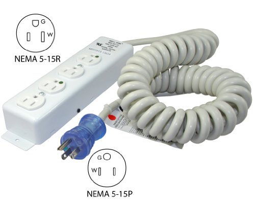 Conntek 55220-CC Up to 12-Feet 14/3 Hospital Grade Coiled Cord with Medical 4 Outlets Power Strip for Model UL1363A