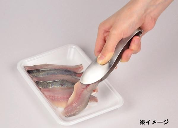 | 軽い力でやわらかくスムーズにつかめます。にんにくや魚など臭いの強い食材や揚げ物など、細かい調理シーンに最適!!指先代わりになるR形状で手を汚しにくく、ネイルをしている方にもオススメ!!オールステンレス製なので洗いやすく衛生的です。 |