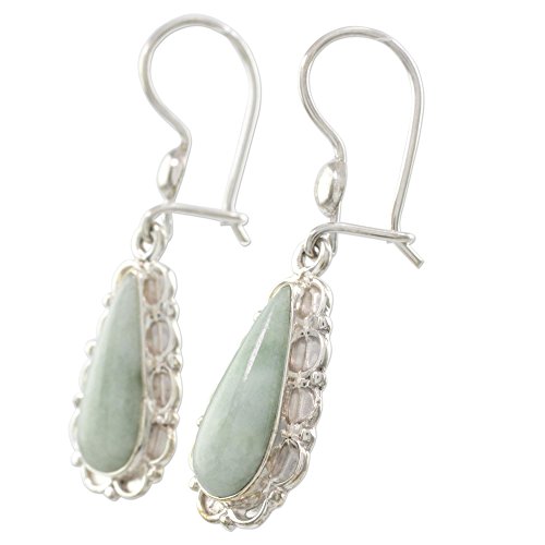 About this item: Light green jade dewdrops are tantalizing in florid earrings by Zandra Lorena Sajbin. The earrings are crafted by hand of .925 sterling silver featuring luminous semicircle petals to frame the beauty of this exquisite gem. Called