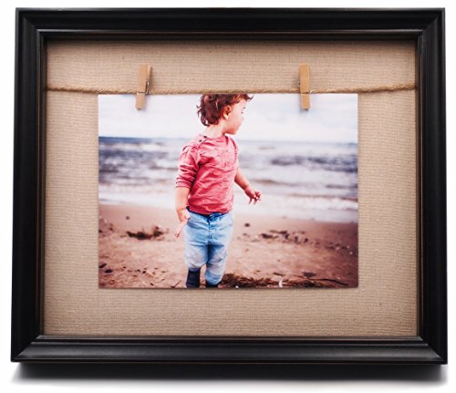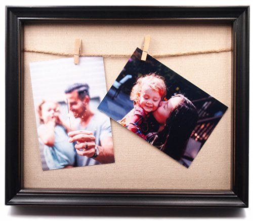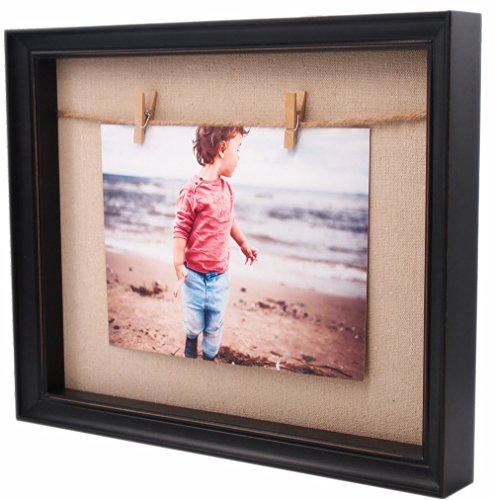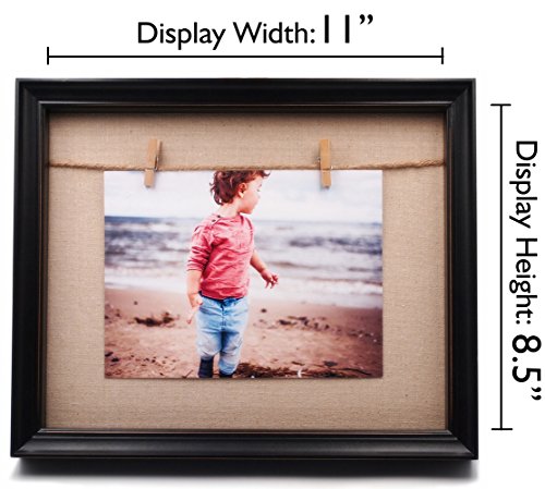 YoMee 8.5x11” Solid Wood Black Shadow Box Picture Frame - 2 Clothespin Clips and Linen Inner Display Board - Display Floating Maximum 8.5x11 Document, Diploma, Certificate, Photo or Artwork