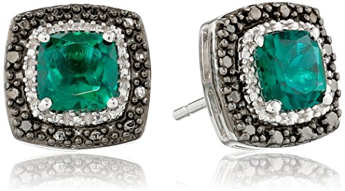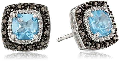 Cushion-cut gemstone centers pop against a trim of black and white diamonds that build this flashy pair of stud earrings. Choose from a variety of colored center stones.