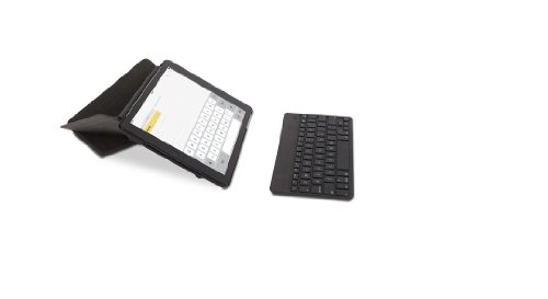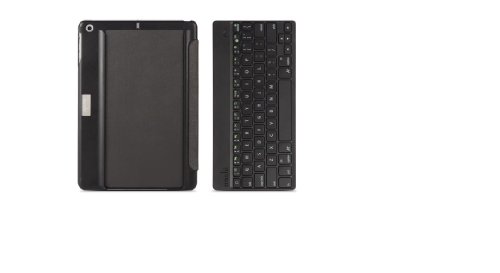 iPad Air origami style folding stand case with detachable Bluetooth keyboard. Product Features Detachable Bluetooth keyboard with 130 hours of battery life and LED power indicator. Folding VersaCover doubles as a stand in portrait and landscape modes. Ultra-thin and lightweight design at 13.4 ounces (380 grams). Durable polycarbonate shell includes convenient keyboard slot. Support for iPad auto-wake and sleep functionality. Product Description Details Don't bother bringing your laptop - VersaKeyboard combines an ultra-thin keyboard with our popular VersaCover to give you the ultimate in iPad productivity. The detachable Bluetooth keyboard can be positioned anywhere within 30 feet of your iPad for maximum typing flexibility. Optimized scissor keys ensure tactile responsiveness and swift iOS keyboard shortcuts. When not in use, the keyboard slides snugly into the rear polycarbonate case for easy storage. The origami-inspired VersaCover allows you to prop your device in both landscape and portrait modes for flexible viewing options. The soft microfiber cover shields the display while on the go and also supports iPad's auto-wake/sleep function. Despite its sturdiness, VersaKeyboard weighs only 13.4 ounces (380 grams), making it one of the lightest, all-in-one iPad keyboard and case solutions available today.Feature