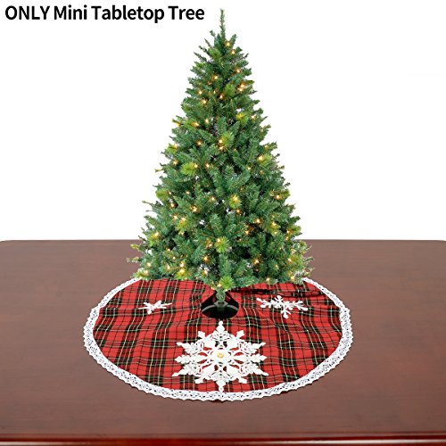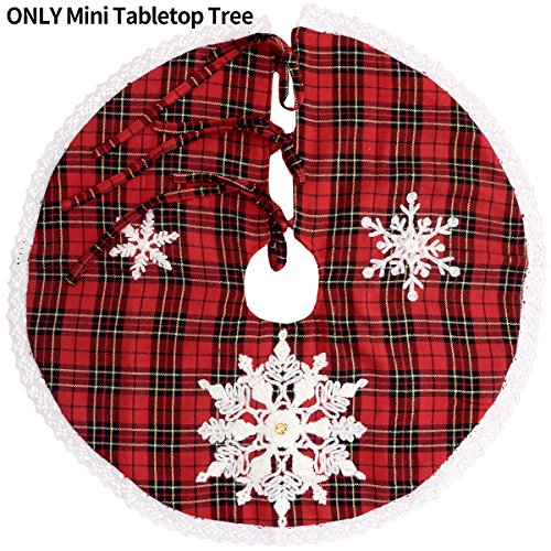 Grelucgo Mini Christmas Tree Skirt For Small Tabletop Tree, Embroidered Snowflake, Round 21 Inch, Red And Black Buffalo Plaid