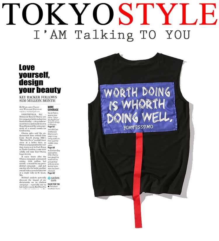 スポーティなタンクトップにレッドの装飾テープがアクセント!