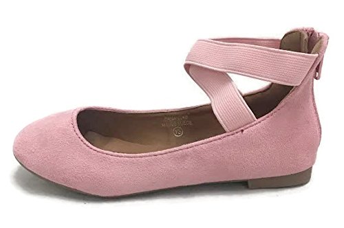 Anna Girl Kids Dress Ballet Flat Elastic Ankle Strap Faux Suede Shoes