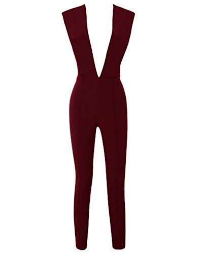 Whoinshop Women's Sexy Deep V Neck Jumpsuit Stretch Bodycon Party Romper.This is jumpsuit is sharp and structured, it is simply chic sexiness. Made from our amazing quality stretch crepe,and it is a curve creating marvel. The panelled Deep Plunge front is super-sexy and leads to a tailored fit trouser that tapers to the legs. This sexy outfit creates an illusion of length and is simple yet daring. Team yours with our barely there sandals in White.