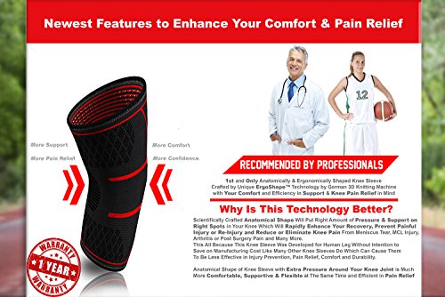 -. Feature : ✅ READ BEFORE BUYING - Unlike other knee sleeves which are choking your thigh and being too lose on knee and lacking overall support, this do provide extra targeted compression & support where you need it most, around your knee! So it's truly comfortable & effective in injury prevention, recovery and pain relief all day and night. This means you can enjoy your favorite activities pain free again! / ✅NON SLIP & INNOVATIVE SUPPORT - While there are few other high quality knee sleeves on amazon the Problem with them is they slip down or lack support you need, we solved this by using 1. New Anti-Slip Silicone Design 2. Ergonomic shape of sleeve 3. Adjustable & Removable strap so you can customize compression to your needs! / ✅INSTANT PAIN RELIEF & SUPPORT or Your Money Back! If you've been looking for pain relief from injury, arthritis, tendonitis or post surgery, then your search is over! That's because this knee sleeve have #1 Design for Pain Relief & Support which means you can enjoy all sports with less to no pain again! / ✅FASTER RECOVERY & ALL DAY COMFORT - You'll LOVE this newest ergonomic design with extra adjustable wrap that will boost your circulation in targeted way which will shorten your recovery time and reduce swelling while still being comfortable whether you are hiking, jogging, weightlifting in gym, cycling or sleeping. / ✅BONUS 1. Buy 2 knee sleeves and get 10% OFF! Use Coupon: "KNEEPAIR". BONUS 2. Innovative adjustable strap for more support and pain relief that you can adjust to your needs! Perfect for LCL, ACL, Torn Ligaments, tendonitis, osteoarthritis, elderly, jumpers knee, meniscus, extra stability guaranteed!