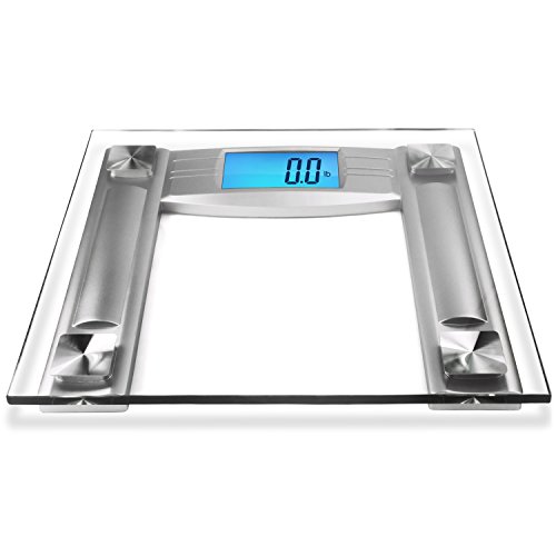 -. Feature : QUALITY DESIGN - Constructed in extra thick, sturdy tempered glass, the SlimSmart® Digital Bathroom Scale is designed to safely withstand up to 400 pounds of weight. Stronger than ordinary glass, our scale is resistant to chips, cracks and more! Also, the non-slip feet will keep the scale from scratching your floors! / AUTOMATIC ON & OFF - Unlike other digital scales, our design is tap free! No more required tapping to turn on the scale. Just step onto the scale and it will automatically read and display your weight. Plus, it automatically conserves battery power via its auto-off feature! / PRECISION & AUTO-CALIBRATION - Our state of the art technology provides you with precision, accuracy and auto calibration. The high precision sensors will give you consistent and accurate measurements at all times! / LCD DIGITAL DISPLAY - The extra-large, soft blue LCD display is easy to read from any distance. You can even read it in the dark! / SATISFACTION GUARANTEE - We are so confident in the quality of our product that we offer a 30-day satisfaction guarantee! If you are unsatisfied, simply contact us to return the product for a full refund.