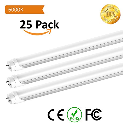 T8 LED Replacement, HouLight 25-Pack, 18W 4-foot T8 LED Light Tube, 6000K, White, Double End Power (25-Pack, Frosted Cover)