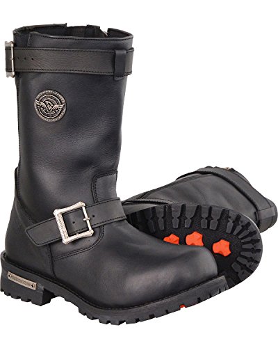 Studio : Milwaukee Leather Publisher : Milwaukee Leather Binding : Apparel Product Description Milwaukee Leather's classic engineer boots have quality construction and cool style. Made from full grain waterproof leather, these boots feature an oil and acid resistant outsole with non-marking treads, Smart Mask Climate Control insoles, and a moisture wicking lining. Side zipper access allows for easy on and off, and Milwaukee signature hardware and side buckles make these boots just as cool as they are comfortable. 0
