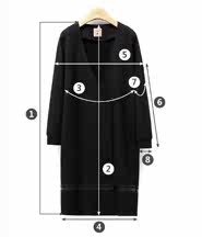 尺码 ①前衣长 ②后中长 ③胸围 ④下摆围 ⑤肩宽 ⑥袖长 ⑦袖臂围 ⑧袖口围