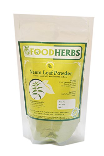 Studio : Foodherbs Publisher : Foodherbs Binding : Health and Beauty Product Description Foodherbs Neem Leaf - Vepillai Powder Neem has antibacterial and antifungal properties. It prevents acne or blemishes and also is good for various skin diseases like eczema and psoriasis. Neem leaves have Vitamin E that is essential for maintaining healthy skin. Regular use of neem in skin care can give your skin that youthful glow and help reduce dryness. **Both food grade and cosmetic grade product.** All our herbal powders are made from the highest quality leaves/nuts and seeds directly collected from the herbal farms. They are free from artificial fertilizers and harmful pesticides. Your satisfaction is our priority and we are providing only new items to our customers. 100% customer satisfaction is guaranteed. 0