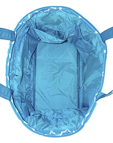 Product Description This fashionable print tote bag is surely to be a statement. Constructed of durable canvas and spacious enough to carry all your needs, this terrific tote bag is sure to grab attention. Additional features include an internal zippered pocket for a wallet, cell phone, and keys, as well as a six internal pockets. 12-inch handle drop to allow for hand carrying or over the shoulder. This bag is definitely a plus to any wardrobe. 0