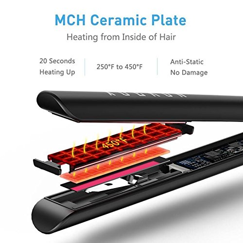 - 【 TIME SAVIOR 】Heating Up To Specified Temperature In 15 Seconds,Ceramic Tourmaline Iron Plate with MCH Technology Gives Much Fast and Even Heating Support, Save Energy, More Durable, Lasts Longer,significantly reduces overall straightening and hair styling time compared to conventional hair straighteners.
