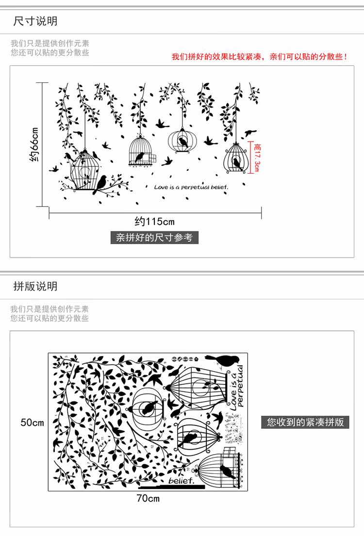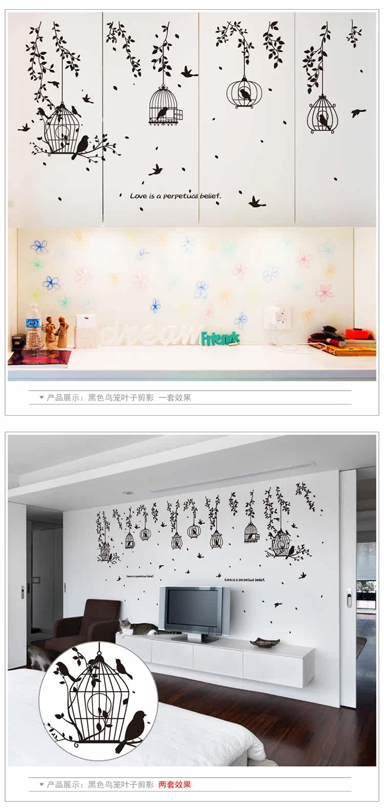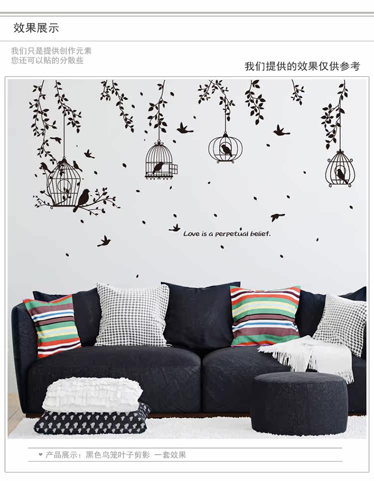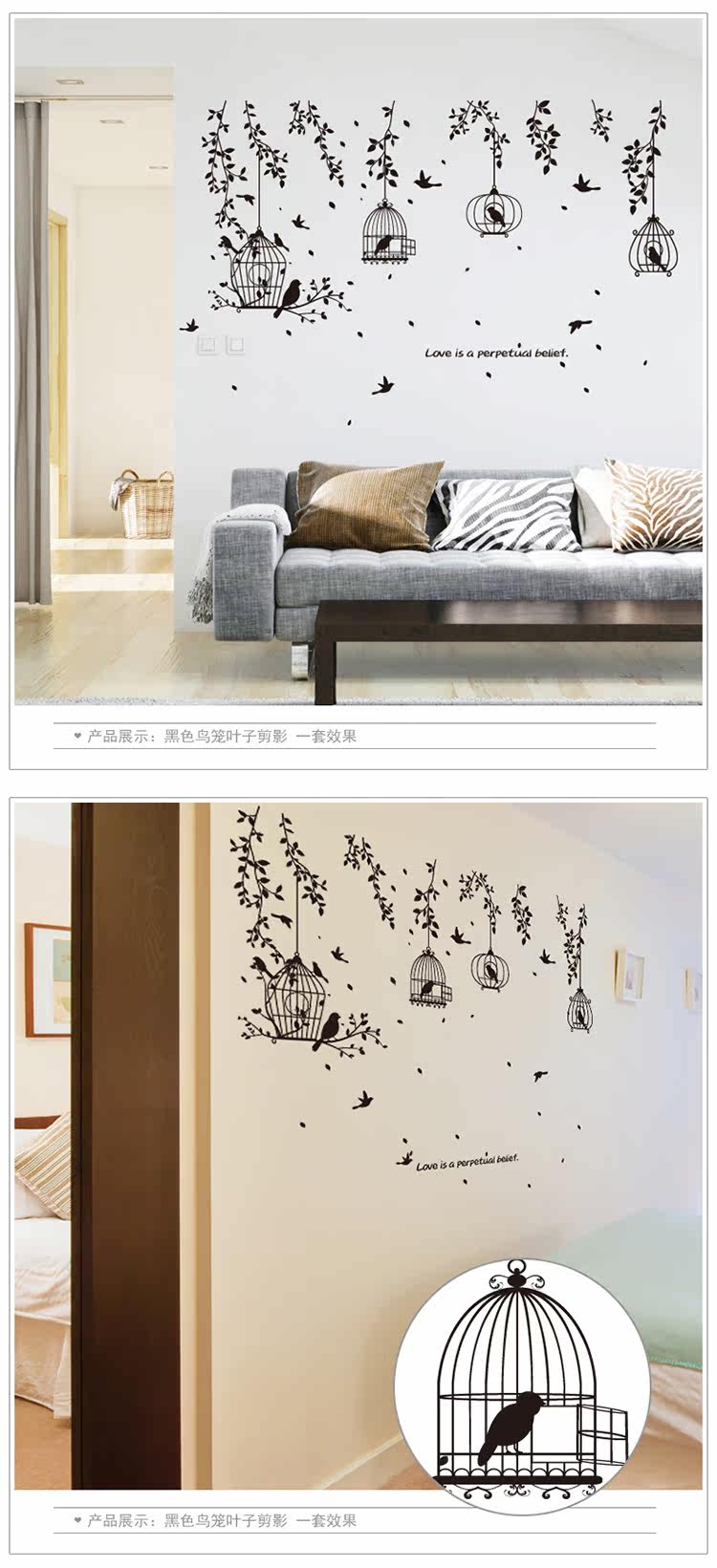 个性黑色鸟笼墙贴画客厅卧室背景装饰墙壁贴大学宿舍墙面布置贴纸