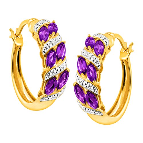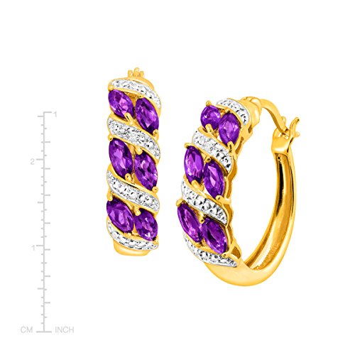 Update your outfits with a touch of purple! Crafted in 18K gold over brass, these earrings feature 1 1/2 carat marquise-cut natural amethysts, accented with one round-cut diamond accent (Color I-J, Clarity I3) per earring. The pieces measure 7/8 by 7/8 inches and feature posts with snap-down back findings. Dainty enough for everyday wear, the bold stones offer an added touch of glamour for special occasions. Plus, brass's affordability is paired with 18K gold's durability, shine, and fashion-forward look, giving you a piece that will last for years to come.