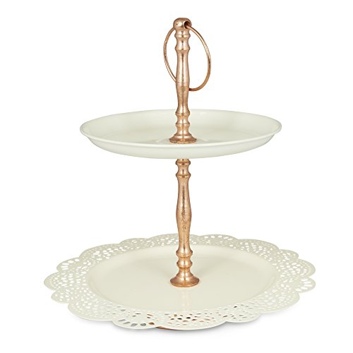 Studio : Elan Publisher : Elan Product Description Serve up frosting-swirled cupcakes or savories with artful charm on this duo of platters. The delicate cutwork and copper plating make for spectacular dessert presentation. Perfect to showcase your desserts at any wedding, event, or party.Made from robust steel in cream with on-trend rose gold accessories.100% Food Safe. NON TOXIC.Ships flat for easy storage and transportation. Measurement in Inch: 10L X 10B X 11H. Care Instructions: Wash and wipe dry with a soft cloth before storing.**ABOUT US** Elan is a curated home decor brand with a wide range of unique and statement making gifting options. They design and manufacture home ware collections in Metal, allowing for lasting products in several beautiful colors. Elan's founder, Vidushi Gupta Agarwal is a graduate of the prestigious Parsons the New School for Design, New York. Born and raised in New Delhi, she studied and worked in New York during her formative years. They manufacture at their factory in Delhi which has been exporting worldwide since 1993. They are SA8000 and ISO 9001-2008 certified with a state of the art Powder Coating Plant. They are environmentally conscious and are equipped with a Scrubbing Unit, Effluent Water Treatment Plant and a Rain Walter Harvesting System. They cater to hospitality groups including reputed hotels and restaurants, corporates and retail stores. 0