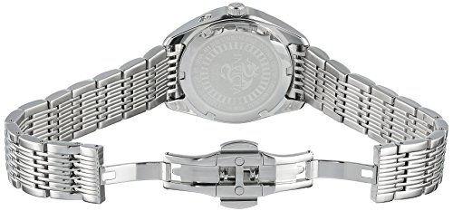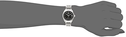 -. Feature : 24 hour sub dial; date window at 3:00 / Black dial with silver tone and white hands and silver tone hour markers; luminous; sapphire crystal; stainless steel case and bracelet / Swiss-quartz movement / Case diameter: 32mm / Water resistant to 330 feet