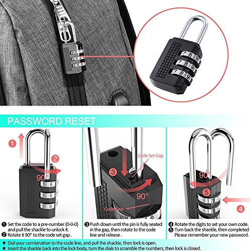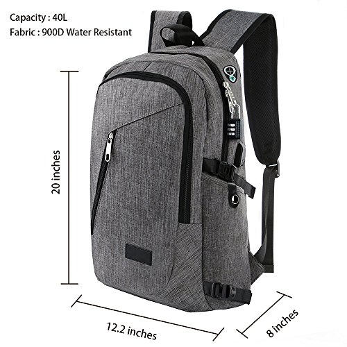 -. Feature : PRACTICAL FUNCTIONS: Equipped with A HOLE for HEADPHONE outside, easy access to earphone usage. External Micro-USB with set-in charging cable is convenient for your electronic device's use anywhere. Padded back panel, combined with adjustable "S" curve shoulder straps offers extra back support and ultra comfort / EXTERNAL DIMENSION: Size: 12.1 x 21.3x 7.9 inches (L x H x W); Holds up to 15.6 inch laptops and meets your needs of day round trips with 20kgs / 44lb LOAD-BEARING / SAFETY GUARANTEED: ANTI-THEFT BACKPACK with anti-theft DUAL MENTAL-ZIPPERS, and a FLECXIBLE LOCK makes your wallet and other valuables safe ( Special Note: Please MUST refer to the Lock instruction and advertised picture for a new code setting) / LARGE CAPACITY & ROOMY COMPARTMENT: 10+ INDEPENDENT Compartments provides separated space for storing your Laptop, Phone, wallet, keys books, clothes and other staffs as many as possible / TEAR-RESISTANT&MULTIPURPOSE: Made of DURABLE nylon fabric,SOFT, LIGHTWEIGHT and RAIN-RESISTANT. Ideal for daily use at school, work, weekend getaway, occasional travel, overnight camping, hiking, and great gifts to everyone you love