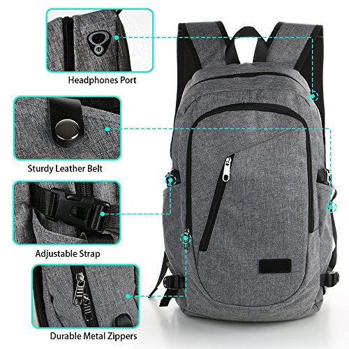 -. Title : Business Laptop Backpack, Travel Bag with Headphone Port and USB Charging Hole, Ecofriendly Water Resistant Backpack for Women / Men, Fits 15.6 Inch Laptop / Tablet by Yorepek (Gray)