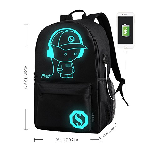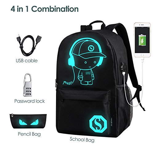 -. Feature : FASHION LUMINOUS BACKPACK - Best part of this S.K.L cool bag is after absorbing light in the daytime you can see the fluorescent effect of the pattern part and it can last 4-6 hours, it would make your backpack most special and coolest! And this is universal for business, school, travel, work, sport for men, women, boys, girls etc. / HIGH-QUALITY & LIGHTWEIGHT & ROOMY - The high level oxford fabric, canvas with cotton handle make the bag super durable, comfortable and wear-resisting, main compartment can load in laptops, books, cosmetic accessories etc.. umbrella and water bottle can be put in the side mesh pockets. / USB PORT - Portable USB charge surface design support quick convenient charging for your electronic devices base on your power bank, easily keep your cellphone full power anywhere! / ANTI-THEFT DESIGN - Humanized theft proof lock with dual-access zipper to ensure your personal belongings safety, so pickpocket can not laid hands on yours anymore. / 4 IN 1 BEST COMBINATION - Purchasing this backpack you will get 1pc password lock+1pc luminous pencil bag+1pc USB cable by free! Buy it now!