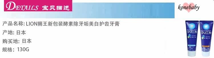 Recommended reason: the removal of teeth hidden plaque, whitening teeth.Enzyme - depth to tartar, Japan only identified the effective components ofdetergent. Enzyme unique components of CLINICA can be decomposed to go out, and the inhibition of tartar, plaque attached to the surface of tooth.Fluoride can increase the acid resistance of teeth, teeth tartardecomposition hidden every corner, let you experience thoroughly cleanteeth
