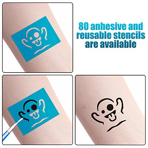 - 80 DIFFERENT DESIGNS FOR ENDLESS PAINTING POSSIBILITIES: This Face Painting Stencil Kit features 80 images with different designs for both boys and girls. Endless painting possibilities can be created by combining various patterns.