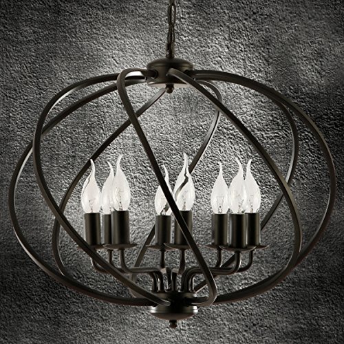 Industrial Adjustable Wrought Iron Vintage Retro Pendant Light - LITFAD 22" Edison Metal Globe Shade Hanging Ceiling Light Cage Chandelier Pendant Lamp Fixture Black Finish with 8 Lights