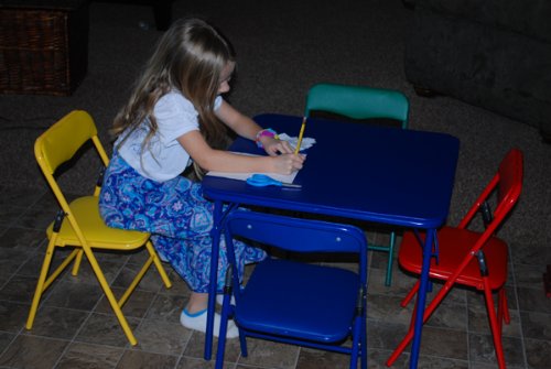 - Feature : FOLDING TABLE: Features a child sized table with FOLDING LEGS and 4 child sized folding chairs / PUSH BUTTON SAFETY LOCKS on the chair's legs prevent smaller children from pinching fingers and folding/unfolding the chairs / Chairs are PADDED and fold up for convenience and portability. They also have RUBBER CAPS on the bottom of the legs / Table has folding legs for easy storage and have RUBBER CAPS on the bottom of the legs / Sturdy, Durable, and Fun colors for the kids