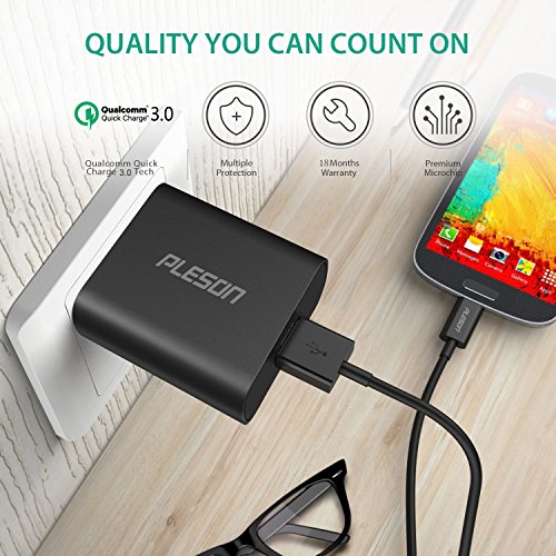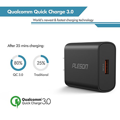 [Qualcomm Quick Charge 3.0] PLESON Quick Charge 3.0 18W USB Wall Charger: Qualcomm Quick Charge 3.0: - Up to 4 times faster than standard chargers.