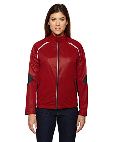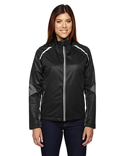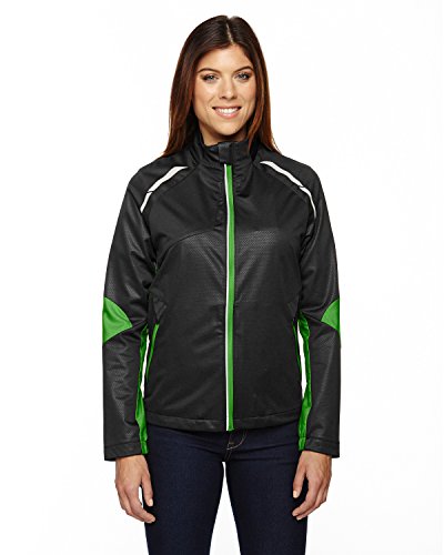 Binding : Apparel Product Description water resistant finish,2.3 oz./yd2/78 gsm; SHELL: 100% polyester mesh bonded with 100% polyester jersey; Contrast hybrid: 100% 240T polyester pongee with embossed print; Inside storm placket with chin guard; front reverse coil zipper with reflective asymmetric piping; Semi-auto lock zipper with rubber pull tab; Reflective print detail along raglan seams and back; Two lower front reversed coil zippered pockets with garages; Partial elasticized cuffs; Audio port access through front left pocket; Adjustable shock cord at back hem with access to front pockets; 0