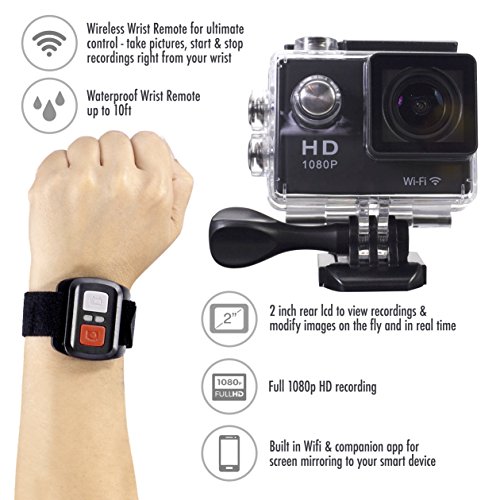 WIRELESS WRIST REMOTE - The waterproof and wireless 2.4gHz wireless wrist strap remote is a perfect companion. No more looking to your actionpro to start and stop recordings or snap photos. Everything is controlled right from your wrist