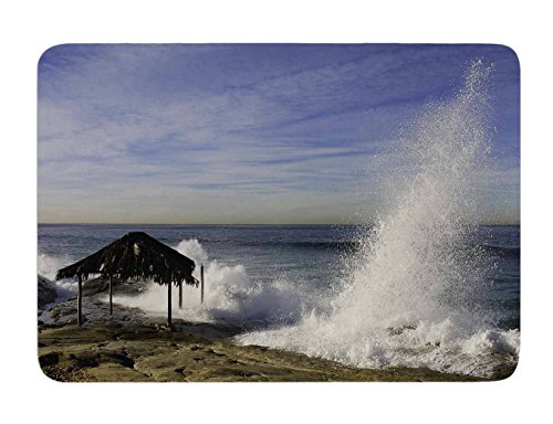 KESS InHouse Nick Nareshni "Hut with Crashing Wave" Blue Brown Memory Foam Bath Mat, 24 by 36-Inch, 24" X 36""