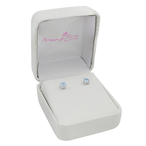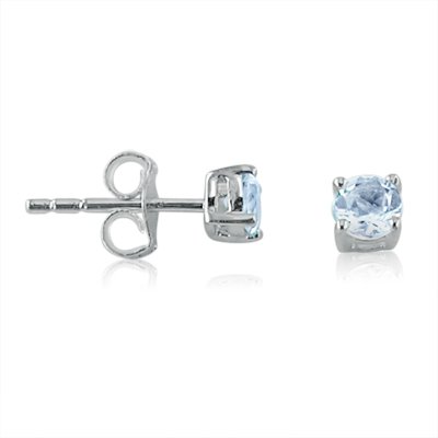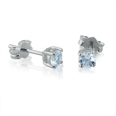 -. Feature : 4MM Round Aquamarine 1/2ct tw. / Sterling Silver Backs and Posts Rhodium Finished / March Birthstone