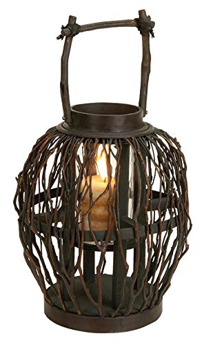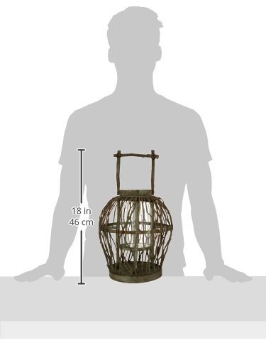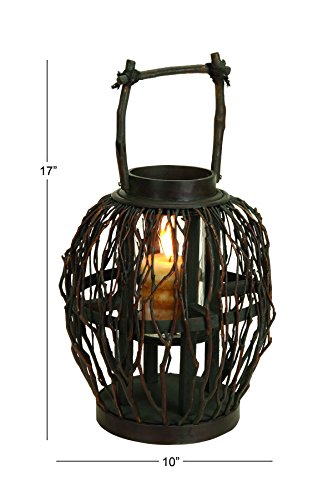 Deco 79 Bamboo Glass Lantern, 17 by 10-Inch