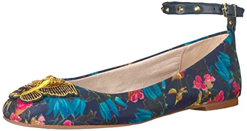 Product DescriptionFloral print ballet flat with studded ankle strap and mix and match embellishment at toebox0