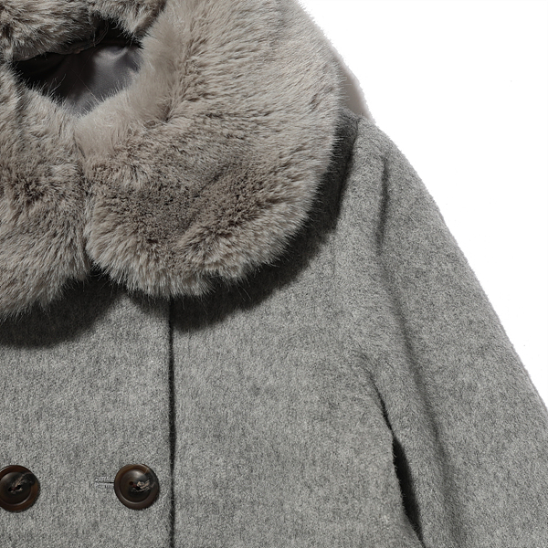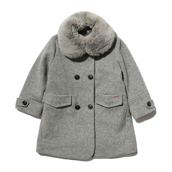 -- 세련된 그레이 컬러의 코트에 부드러운 퍼가 탈부착 할 수 있는 여아용 코트