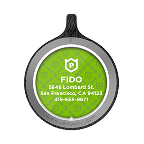 Personalized White & Gold Pawscout Digital Pet Tag with Green Pawscout Pattern Nameplate - Pawscout Pet Finder is a next-generation digital pet tag. The Pawscout Pet Finder attaches to any pet collar and locates your pet within a 200-foot radius of any phone or tablet with the Pawscout App. You can put your pet on a virtual leash and receive alerts if he strays. Invite friends, family, neighbors, dog walkers and pet sitters to install the free app to help protect your pet. If the worst ever happens and your pet goes missing, send out a digital "lost dog" flyer to all the animal lovers in your area and have the community searching for your pet the moment you notice he's on the loose. Why do you need Pawscout? Microchip information goes out of date, and reading a microchip requires a trip to the vet. Pets are family members, and it is impossible to capture their appearance, personality and special needs in the two or three lines provided by traditional pet tags. Pawscout offers a complete pet profile and a lifetime of protection for a one-time purchase. The Pawscout battery lasts six months or more and is easy to replace. Pawscout Pet Finder is waterproof, lightweight, compact and designed for dogs and cats. And it was developed in partnership with the SFSPCA to introduce a community-supported way to find lost pets and reunite them with their families. Never lose your best friend.Feature