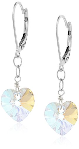 Earrings featuring heart-shape Swarovski Crystal drops suspended from sterling silver chains and lever-back closures Made in the USA Brand : Amazon Collection Item model num : CK203J MPN(PartNumber) : CK203J