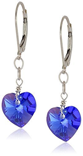 Sterling Silver Swarovski Elements Sapphire Color Aurora Borealis Heart Shape Drop Earrings