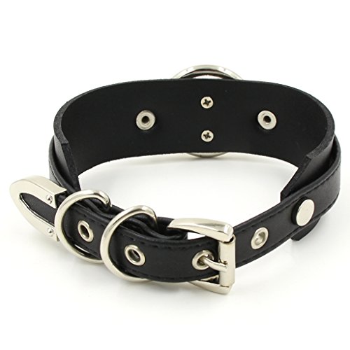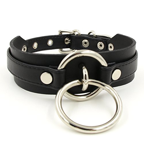 This cool choker is made with super quality vegan leather and alloy, centered with double o rings, with a delicate buckle which clasps at the back of the neck.