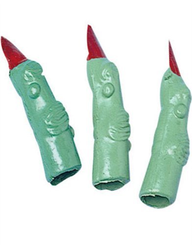 -. Binding : Apparel -. Brand : CoolGlow -. ClothingSize : 3" -. Color : Green -. Department : mens -. Feature : A Scary addition to any costume / Made of soft plastic / Design includes warts, red finger nails and an eerie green skin tone perfect for any witch, goblin, zombie or ghoul / These are fun party favors and give aways -. Label : Coolglow -. Manufacturer : Coolglow -. MPN : 43377 -. NumberOfItems : 1 -. PackageQuantity : 1 -. PartNumber : 43377 -. ProductGroup : Apparel -. ProductTypeName : ACCESSORY -. Publisher : Coolglow -. Size : 3" -. Studio : Coolglow -. Title : Witch Fingers-24 Pieces