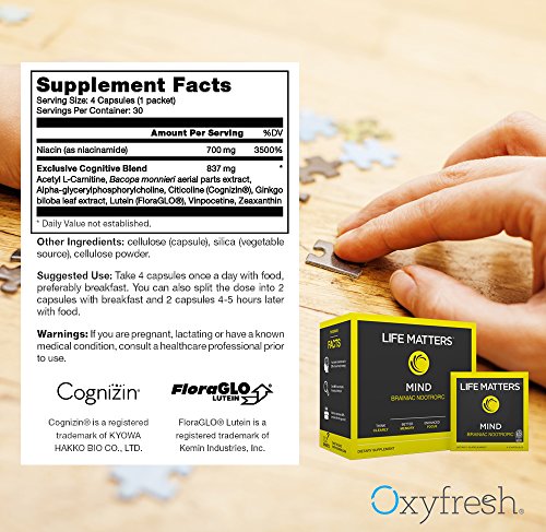 -. Feature : ★ THE ULTIMATE NOOTROPIC BRAIN FOOD - MIND has a scientifically formulated blend of core nutrients to help maximize your brain's performance and protect it against cognitive decline.* / ★ MEMORY, FOCUS & CLARITY - MIND is designed to maximize brain performance, allowing you to stay focused and sharp. This daily supplement works on a cellular level to fire up your brain cells.* / ★ COGNIZIN® HELPS BOOST BRAIN POWER - A new proP.R.Ietary ingredient in MIND is Cognizin®, which is a patented form of citicoline that supplies your brain with the energy it needs to stay focused and sharp.* / ★ PROVEN FORMULA - Studies show a direct link between lutein and zeaxanthin levels and improved cognitive function. Those with higher levels of lutein and zeaxanthin have better reaction speed, memory recall, and faster visual processing than people with lower levels / ★ FIGHT FREE RADICALS - Bacopa enhances antioxidant function in the brain and reduces free radical damage in brain synapses, which supports better brain plasticity.*