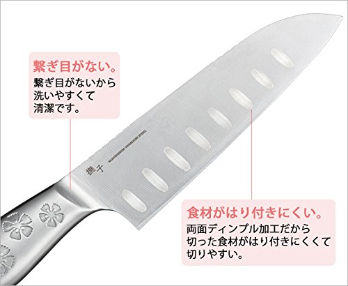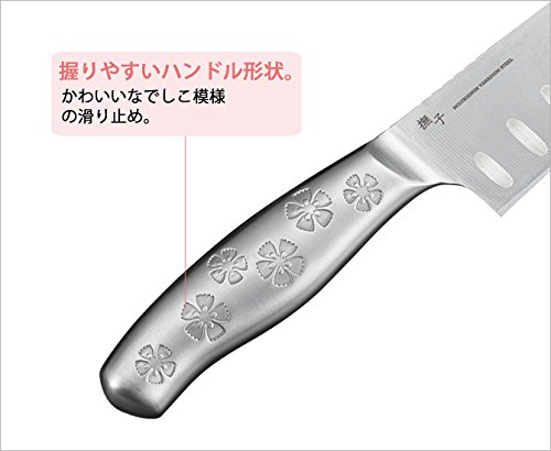 주식회사고등이다 와 부엌칼 올 스텐레스 부엌칼 나이프 편 장 끊어진 스테인레스제 나데시코 미끄럼방지 씻기 쉽 청결 인기 귀여운 일본제 어네스트 올 스텐레스 3 덕부엌칼 나데시코무늬 A-76095