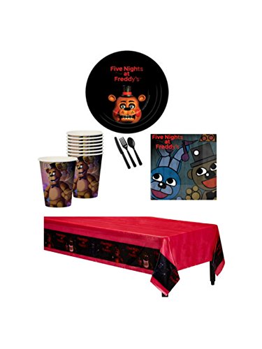 -. Feature : Included in each FNAF (Five Nights at Freddys) Deluxe Party Pack are: 8x themed snack plates (7" in diameter), 8x 9 ounce cups, 16x beverage napkins, 16x sets of plastic spoons, forks and knives (black), Includes (1) tablecover. / Party supplies for 8 guests / Survive your shift as a party planner with this Deluxe Five Nights at Freddy's Party Supply Pack. Whether you're throwing a party or get-together at Freddy Fazbear's Pizza, your home or office this party pack is sure to entertain 5 Nights at Freddys fans of all ages. / Great for All Types of Parties, Birthday Parties, Office Parties or any other occasion