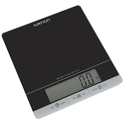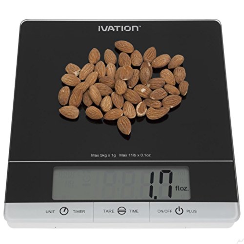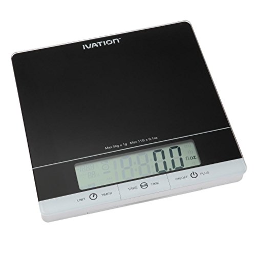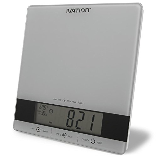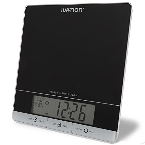 -. Title : Ivation Glass Top Digital Kitchen Scale w/Timer, Clock, Temperature & RH Levels - Provides Super Accurate Readings in Ounce, Fluid Ounce, Milliliter, Pound:Ounce & Gram Weight Units - Features 11-Pound Capacity & One-Button Tare Setting