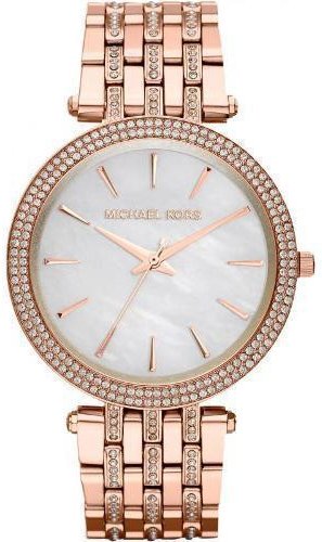Product DescriptionThis unique Michael Kors MK3220 analog quartz watch features a mother of pearl dial and a rose gold stainless steel case and band.0
